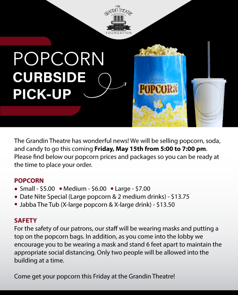 Below are a few samples of the flyers I designed for the historic Grandin Theatre. Each piece was created to promote everything from themed movie series and special screenings to upcoming events and concession offers.
