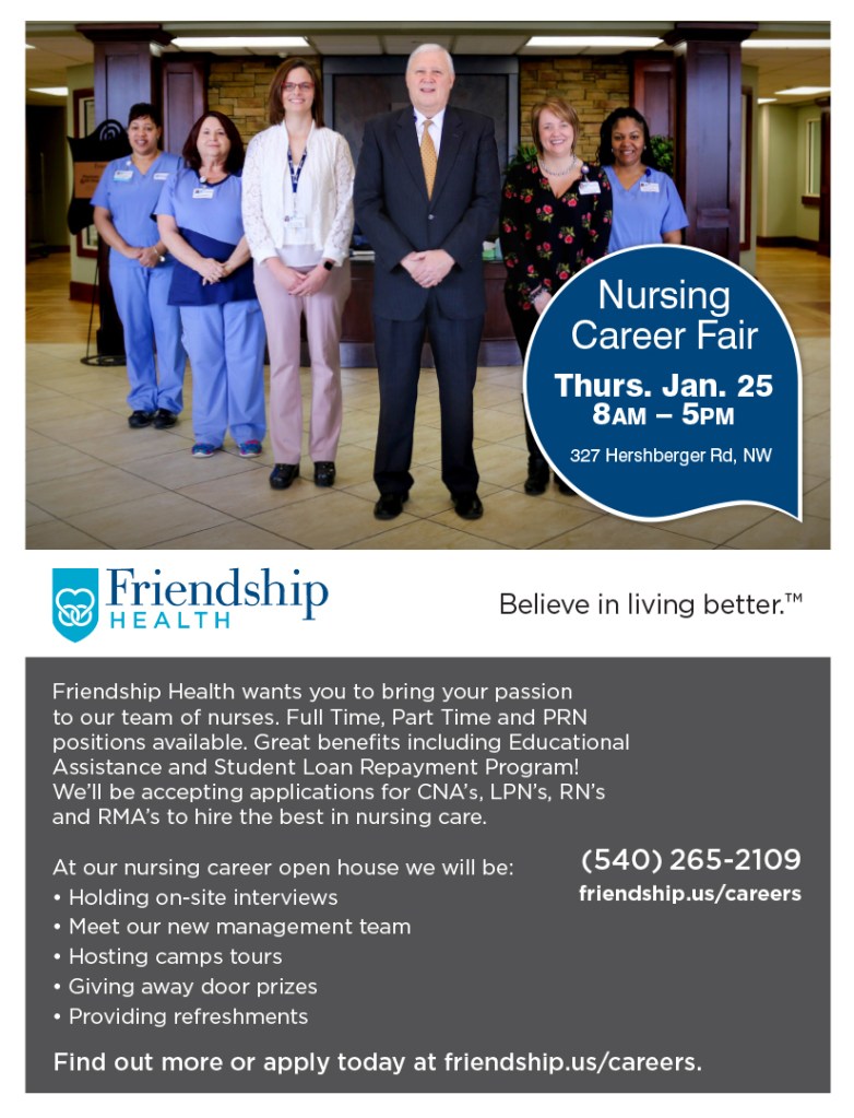 Following Friendship’s advertising guidelines, I contributed to the development of print ads featured in several local Roanoke Valley publications, including Senior News, Virginia Living, and Our Health Magazine. I also designed internal flyers to support the Human Resources department in effectively communicating key updates and information to employees